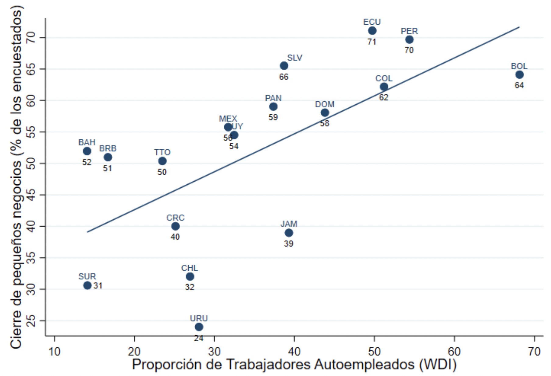 Las tasas de pérdida de puestos de trabajo y cierre de empresas durante la pandemia son mayores en los países con mayor proporción de empleo autónomo.